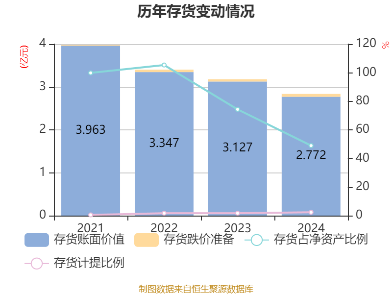 更动来看从存货,24年终截至20,值为2.77亿元公司存货账面价,48.98%占净资产的,546.45万元较上年终削减3。中其,661.6万元存货抑价预备为,2.33%计提比例为。