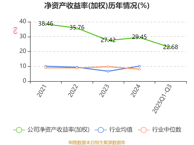 显示数据,资产收益率为29.45%2024年公司加权均匀净,2.03个百分点较上年同期上升。均净资产收益率为22.68%2025年前三季度公司加权平,24个百分点同比降落8.。