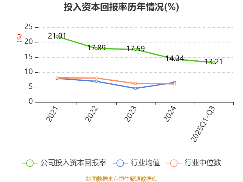 本回报率为14.34%公司2024年加入资,3.25个百分点较上年同期降落。血本回报率为13.21%2025年前三季度加入,0.21个百分点较上年同期降落。