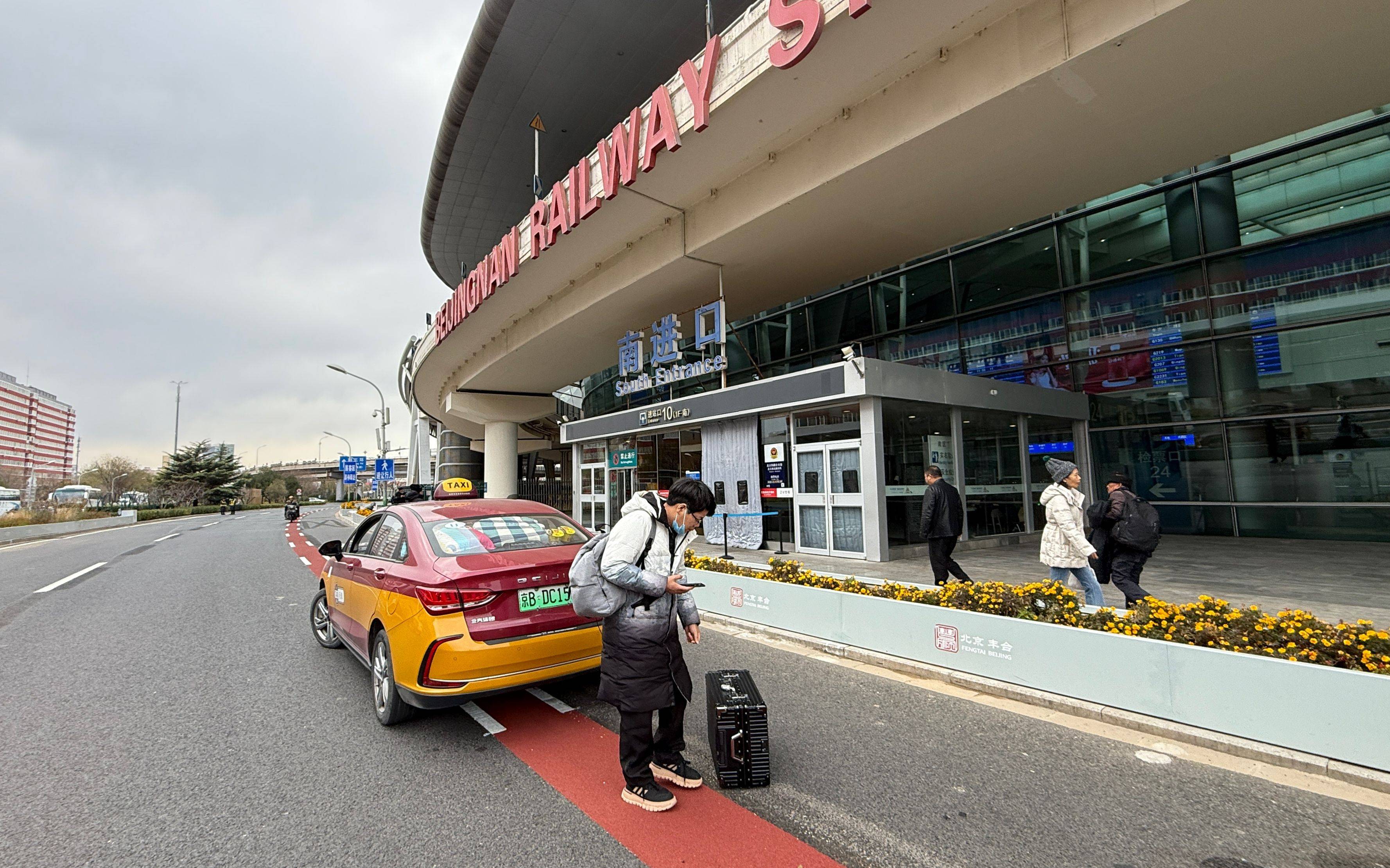 南广场道段北京南站道,放的落客区下车一名搭客正在新开,是进站口死后就。报记者 王贵彬 材料图片/新京摄